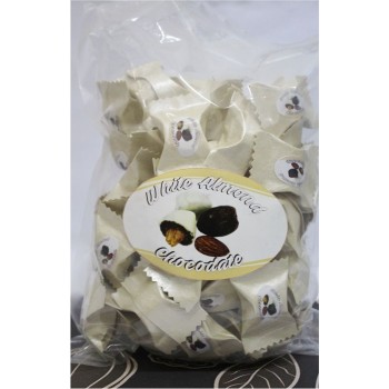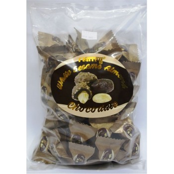 Coklat kurma isi kacang almond, dengan varian rasa milk, white, green tea, black sesame dan white sesame. Dikemas satuan dengan kemasan kertas yang menarik dan unik. Berat kemasan kurang lebih 500g, isi 60 pieces.