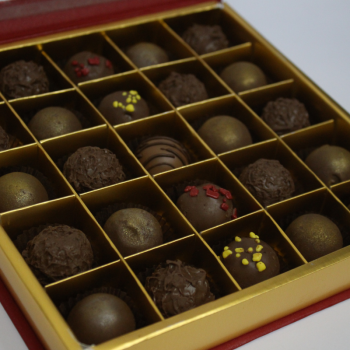 Coklat truffle paduan isi/filling yang beraneka rasa dengan coating yang beraneka ragam, kelembutan fillingnya sangat menggugah selera, dibuat dari bahan berkualitas tinggi mengandung asli coklat (cocoa butter) dan halal. Dimensi/ukuran coklat kurang lebih diameter 3cm, terdapat 18 varian rasa : curly strawberry, curly greentea, curly blueberry, curly mango, curly milk, matcha, coffee, coconut, dark, creamy peanut, rocky milk, rocky vanila, crystal strawberry, crystal blueberry, white planet, milk planet, dark planet, cappucino.