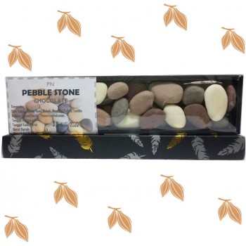 Coklat bentuk batu sungai dengan komposisi warna yang natural seperti warna asli batu sungai, setiap butir warna coklat pebble memiliki rasa yang berbeda, unik bentuknya, dibuat dari coklat couverture yang berkualitas dan halal, tanpa pewarna buatan, asli menggunakan warna alami dari buah coklat. Dalam setiap kemasan jar 400g terdiri dari rasa white chocolate 33%, milk chocolate 34% dan dark chocolate 54%-72%.